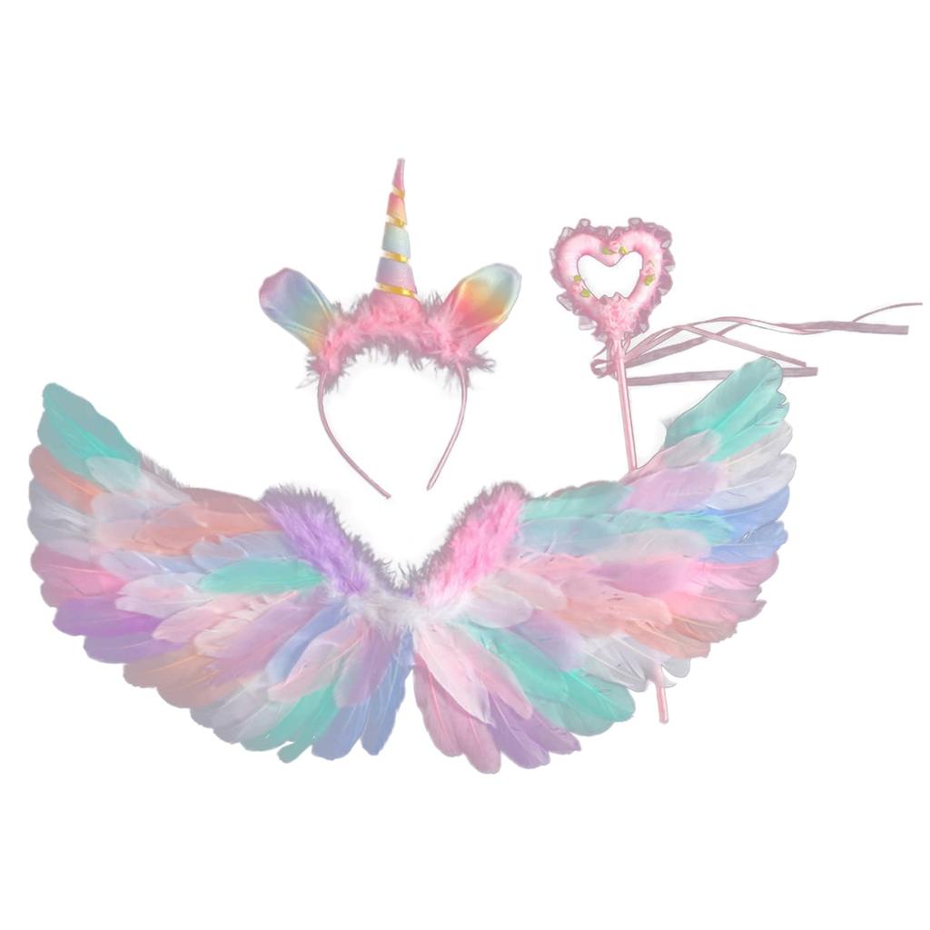 TOMMYFIELD Unicorn Costume with and Feathers for Fairy Cosplay Wings, Headband, Kids, Costume,