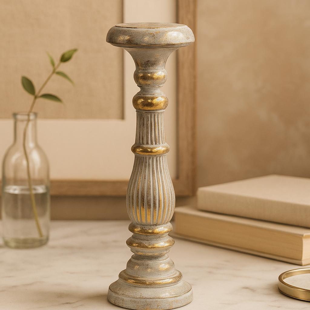 Ljusstake Stor Trä Vit Guld
