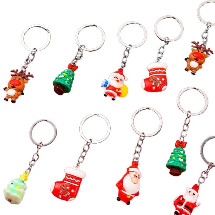 10Pcs Christmas Keychains Cartoon Keyrings Ornaments Decoration Party Favors