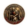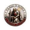Intrikat detaljerad dubbelsidig design: Myntet är tillverkat med precision och uppvisar ett unikt dubbelsidigt motiv som kombinerar religiös ikonografi och riddarsymbolik.. Framsidan visar en slående riddarfigur som står beslutsamt, medan baksidan avbildar en sköld med heliga bilder, som tillsammans berättar en komplett historia om tro och heder.