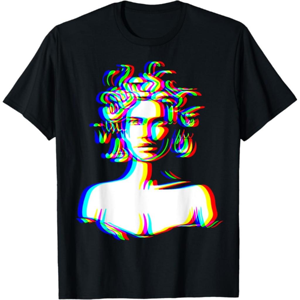 Medusa Glitch Greek Mythology EDM Music Vaporwave Aesthetic T-Shirt