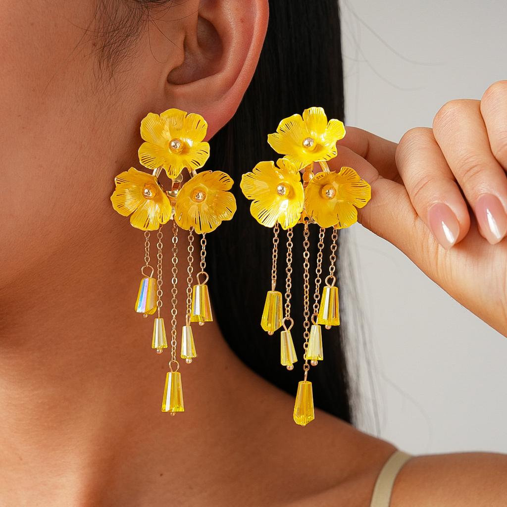 Crystal spray paint flower fringed silver needle earrings retro niche environmentally friendly earrings