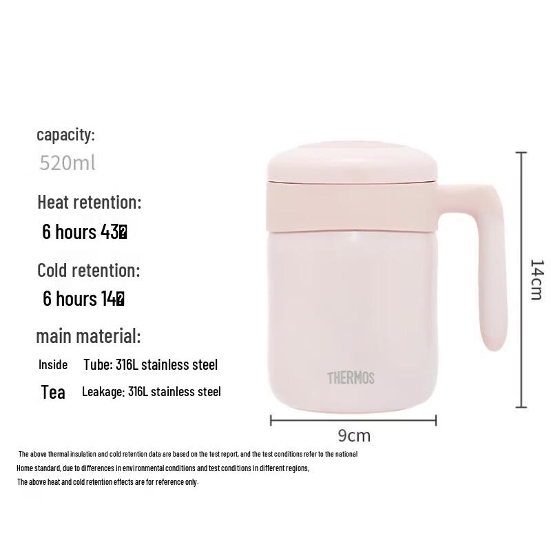 Experience superior hydration with the THERMOS TCMM 316L Stainless Steel Handle Mug. Crafted with an upgraded 316L stainless steel inner liner and a 304 stainless steel body, this 520ml wide-mouth mug ensures durability and optimal temperature retention. Its convenient screw cap and ergonomic handle make it perfect for direct drinking on the go. Available in a stylish Light Elegant Pink.