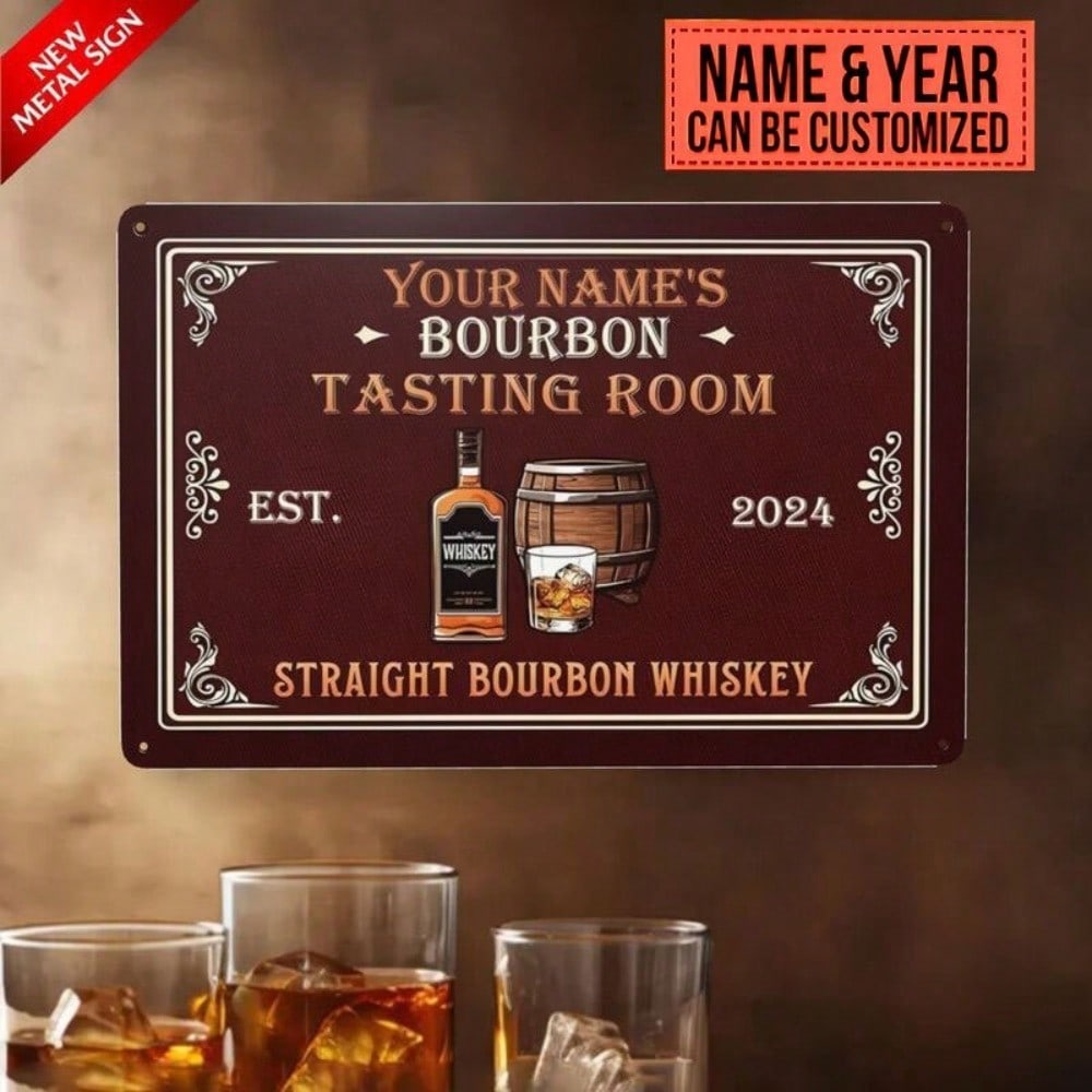 Whiskey Tin Sign Vintage Metal Wall Art Customizable Bar Decor