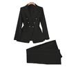 Andningsbart polyesterfibermaterial: Denna damkostym är tillverkad av högkvalitativ polyesterfiber och erbjuder ett lätt och andningsbart tyg som säkerställer komfort hela dagen.. Materialets fukttransporterande egenskaper håller dig sval under vår och höst, vilket gör det idealiskt för övergångsväder utan att kompromissa med stil eller rörelsefrihet.