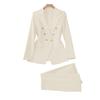 Denna damkostym är tillverkad av andningsbar polyesterfiber, vilket säkerställer lätt komfort och stil för vår och höst. Det avslappnade setet består av en långärmad jacka för pendling, parad med byxor med vida ben, designat för att framhäva din unika charm samtidigt som det ger en avslappnad men ändå elegant look..