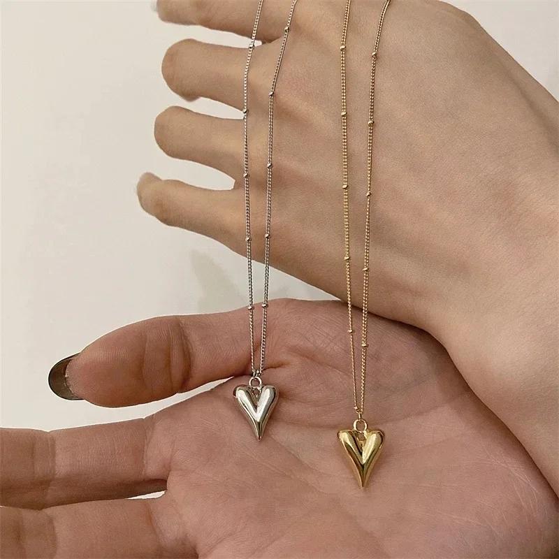 Vintage Golden Silver Color Heart Pendant Necklace for Women New Trend Girls Clavicle Chain Jewelry Birthday Gifts Wholesale
