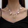 Single-piece beach seashell necklace, faux pearl, starfish, and conch elegant jewelry, suitable for beach vacations and parties.
