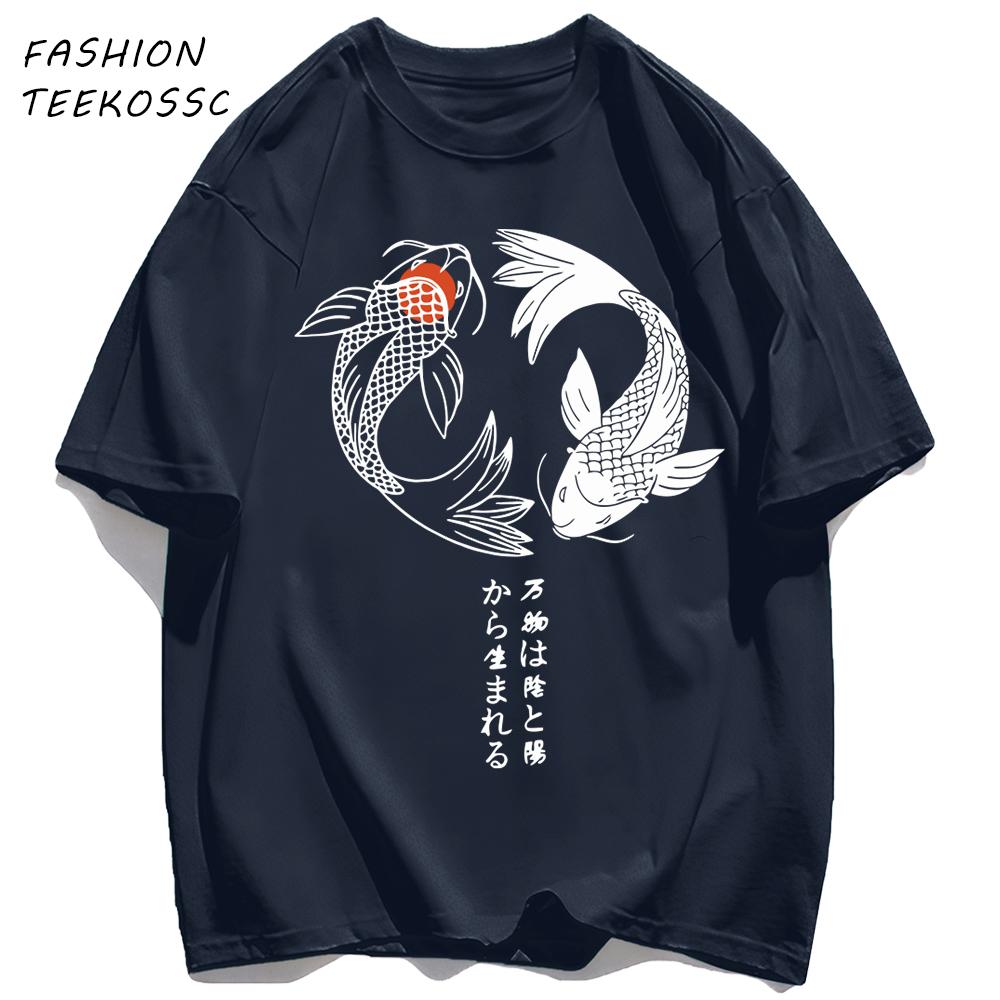 Two Koi Fish Swimming In Watermen T Shirts AllMatch Soft Short Sleev Fashion Summer Basics TShirt Unisex Cotton Loose Top