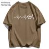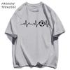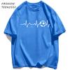 Football Electrocardiogram Print Men T Shirt Crewneck Summer TShirt Casual Loose Clothes Unisex AllMatch Cotton Sportswear