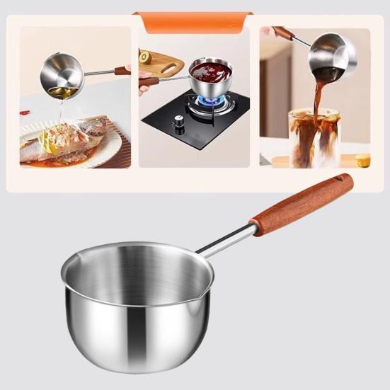 Kompakt storlek för dagligt bruk: Med stor kapacitet är denna kompakta kastrull perfekt för att värma mjölk, smälta smör, pochera ägg eller tillaga såser och soppor.. Dess hanterbara storlek gör den till en funktionell nödvändighet för snabba uppgifter samtidigt som den sparar plats i ditt köksarsenal.
