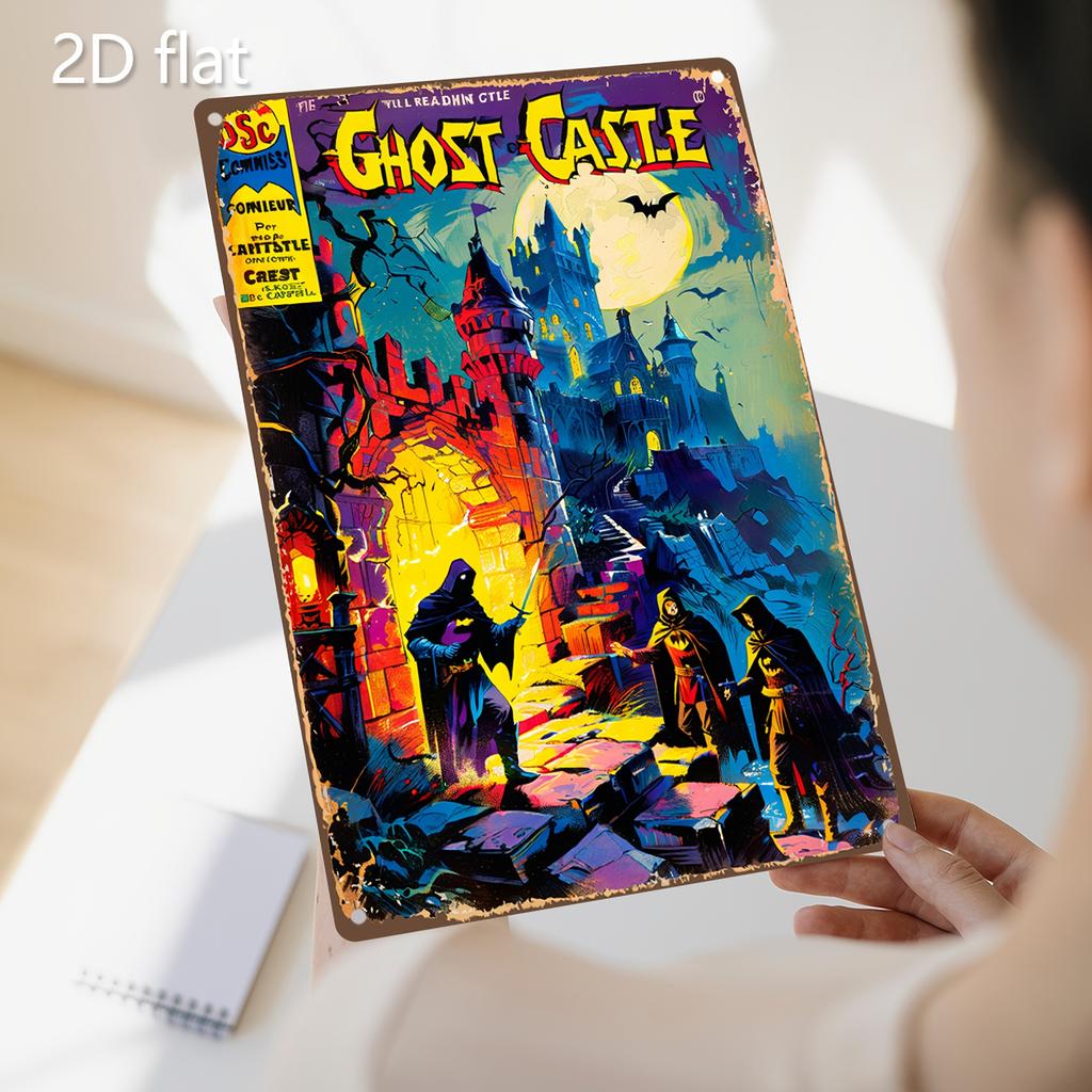 Gothic Horror Metal Wall Art Vintage Tinplate Eerie Castle Artwork with PreDrilled Holes WeatherResistant Iron Plaque
