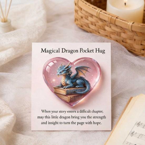 Detta Dragon Heart fickkramkort erbjuder en kompakt, fickstor tröstsymbol designad för dagligt emotionellt stöd.. Tillverkad med en slank, robust konstruktion, passar den lätt i fickan, väskan eller handen och ger lugnande taktil komfort vart du än går, vare sig det är i skolan, på jobbet eller hemma.. Med en bok-inspirerad design som symboliserar tillväxt, kunskap och inre styrka, fungerar detta minne som en kraftfull påminnelse om motståndskraft och hopp..