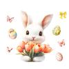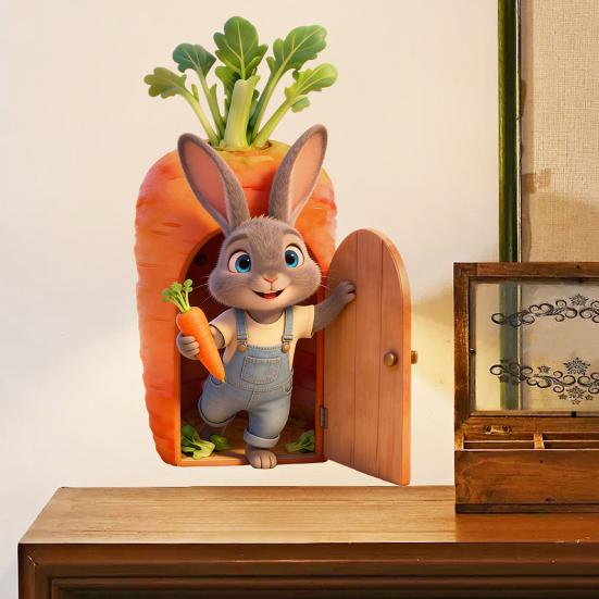 Förvandla ditt utrymme med denna charmiga väggdekal, perfekt för att skapa en varm och helande atmosfär i vilket rum som helst.. Med mjuka, söta motiv som morotsstugor och kaniner som håller blommor, lyser den omedelbart upp barns rum, entréer eller fönsterbrädor med en sagolik känsla..