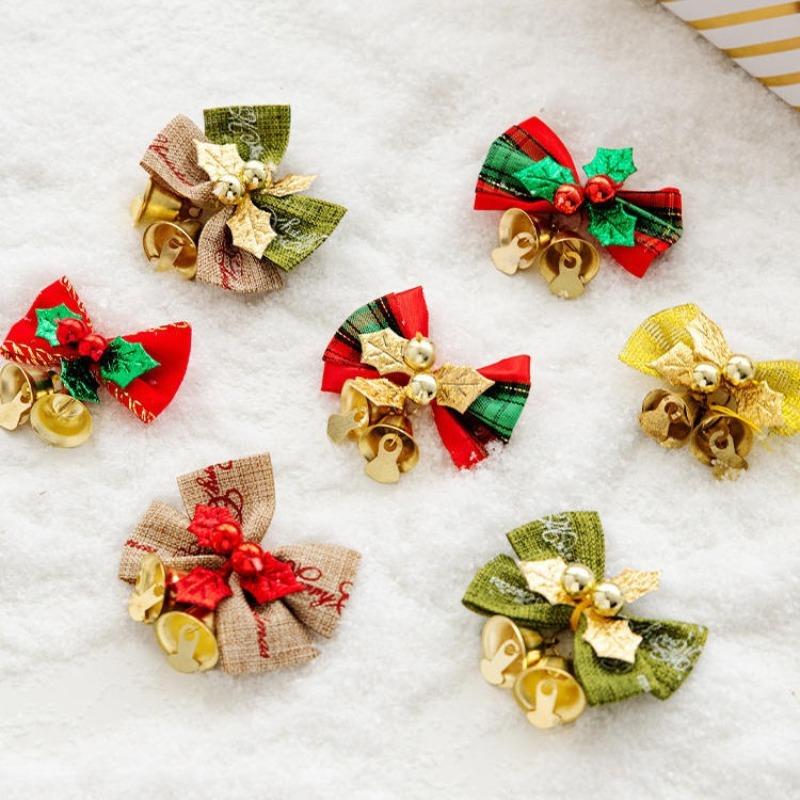 10pcs Christmas Bow With Bell Mini Xmas Tree Bowknot Pendant Ornaments For Home Decoration 2025 Navidad New Year Party DIY Gifts