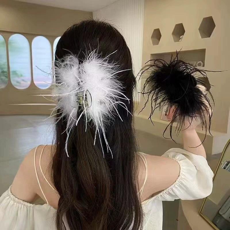 Pure Feather Hair Grab Clip Back of Head Black Shark Clip Plush Hair Accessories Commuter Headgear
