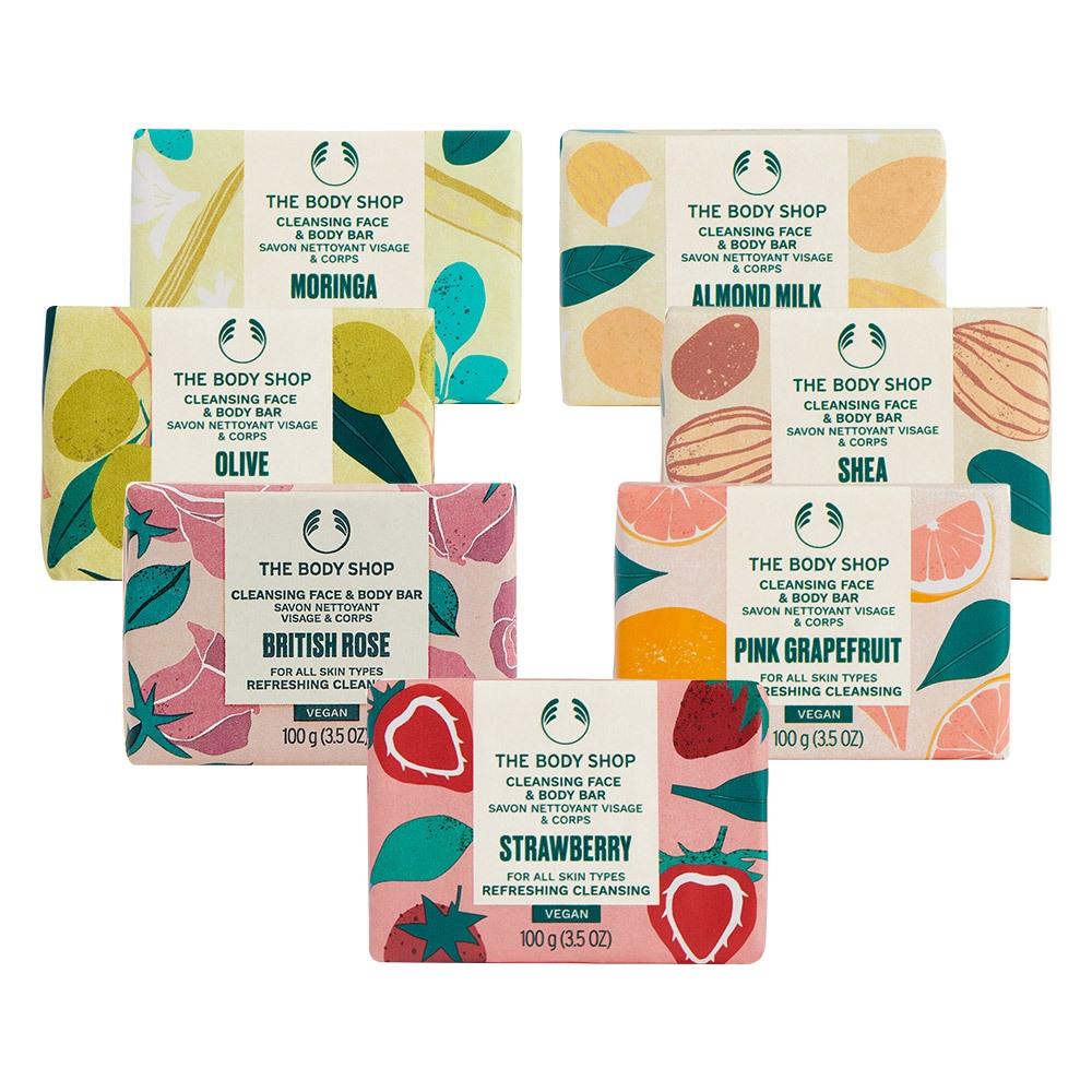 The Body Shop Cleansing Face & Body Bar 100g is a multi-cleansing soap series composed of 7 different scents that can be used on both the face and body. Each product is suitable for all skin types and maintains skin moisture without drying after cleansing. The volume is 100g, and customer reviews reflect high satisfaction ratings.