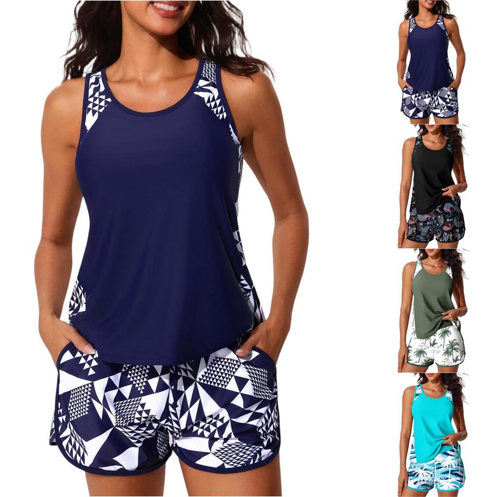 Women's Sports Swimsuit Two-piece Set, Vest , Shorts, Printed