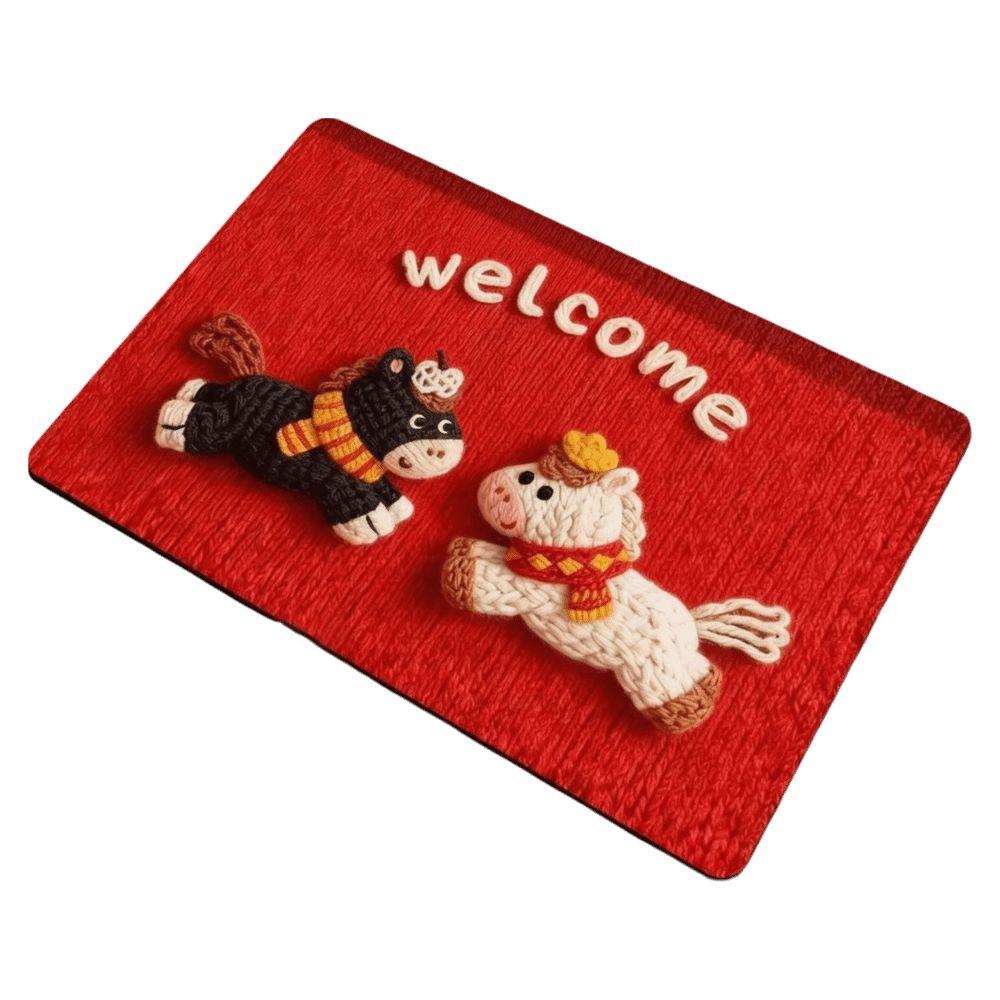 New Horse Pattern New Year Door Mat Non-slip Bath Mat Soft Water Absorption Blanket Home Decorations