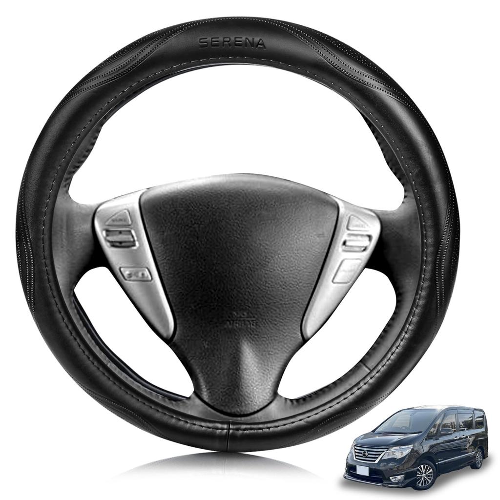 [Compatible Vehicles] Compatible with Nissan Serena C26. [Set Contents] 1 Steering Wheel Cover [Total: 1 Set]. Excellent Breathability and Wear Resistance for Long-Term Use: This steering wheel cover features a high-quality design that combines excellent breathability and wear resistance, ensuring durability even after extended use. The ventilation holes prevent sweating while driving, keeping your palms comfortable and dry. It also resists wear and tear, maintaining its functionality even after extended use. High-Quality Materials and Precision Craftsmanship: Waterproof, stain-resistant, wear-resistant, anti-aging, and anti-slip, ensuring a stable grip. The ventilation holes prevent sweat buildup and keep you comfortable while driving, supporting a comfortable drive. Stylish Design with Exclusive Vehicle Logo: This steering wheel cover comes with exclusive vehicle logo and features a design that perfectly fits your vehicle. Made from the highest quality genuine leather, it provides a soft feel that feels comfortable in your hand. Furthermore, its stylish design enhances the interior ambiance of your vehicle. It has excellent waterproof properties, is resistant to water and dirt, and is easy to clean.