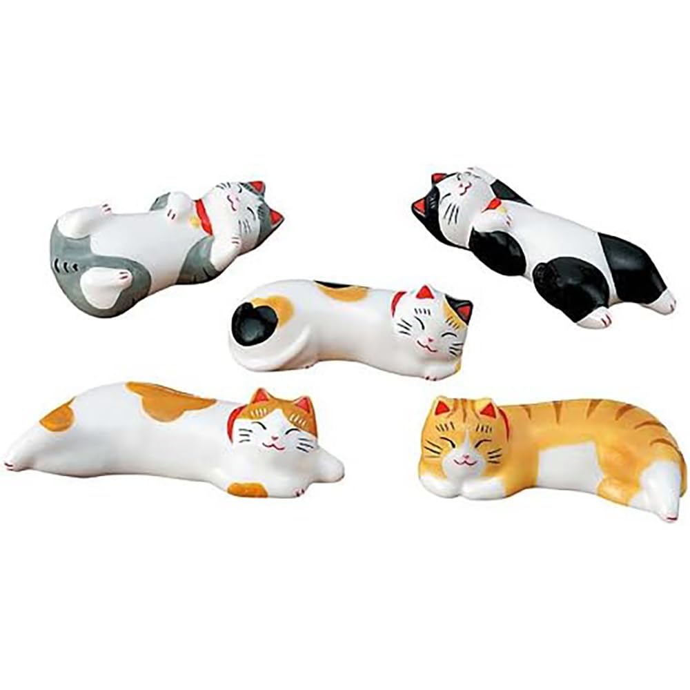Yakushi Kiln Chopstick Rests, Set of 3, "Sleeping Cat