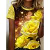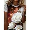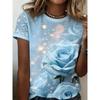 Damer Sommar Blommor Enkel Rosmönstrad Stor Lös Casual T-shirt Trendig Bekväm Mjuk Andningsbar Kortärmad T-shirt
