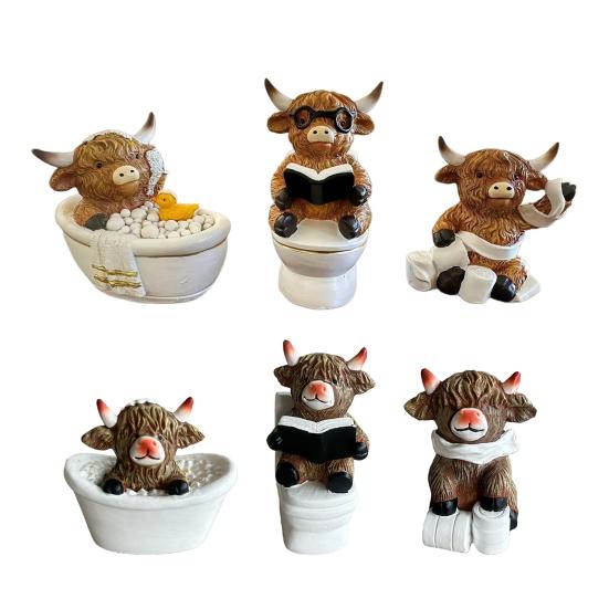Multifunktionell dekorativ attraktionskraft: Även om dessa höglandskon-statyer ursprungligen var avsedda för badrum, fungerar de som mångsidiga dekorativa föremål som passar för flera olika ändamål.. Deras attraktiva design kompletterar rustika, bondgårds- eller lantligstilade inredningar och kan visas året runt för att ge värme och karaktär till vardagsrum, kök eller kontorsutrymmen.