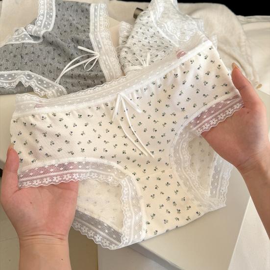 Damunderkläder i bomull med spetskant och blommigt tryck, sömlösa hipster-trosor, mjuka, söta, andningsbara trosor