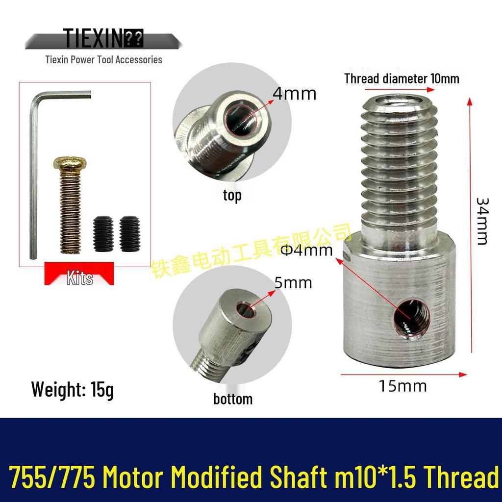 775/755 Motor DIY Elektrisk Borr Omvandlingsaxel M10*1.5 Gänga, 5MM Innerdiameter