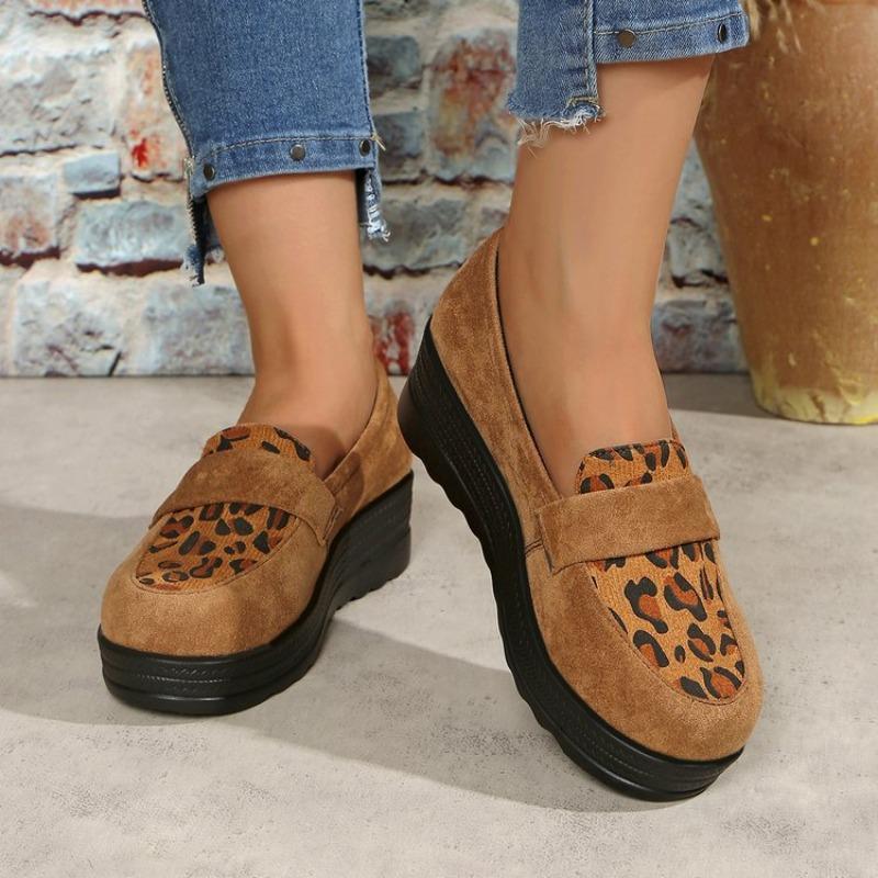Women's Plus Size Leopard Print Suede Loafers, Block Heel Slip-On Casual Shoes