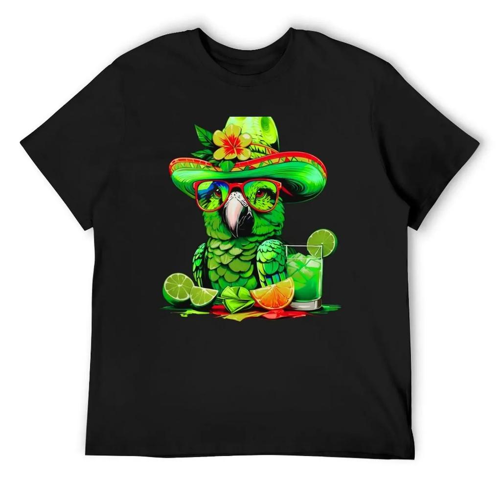 Fabulous Parrot Summer Vibes Sunglasses Refreshing Lime Cocktails T-Shirt plus size tops aesthetic clothes funny t shirts men