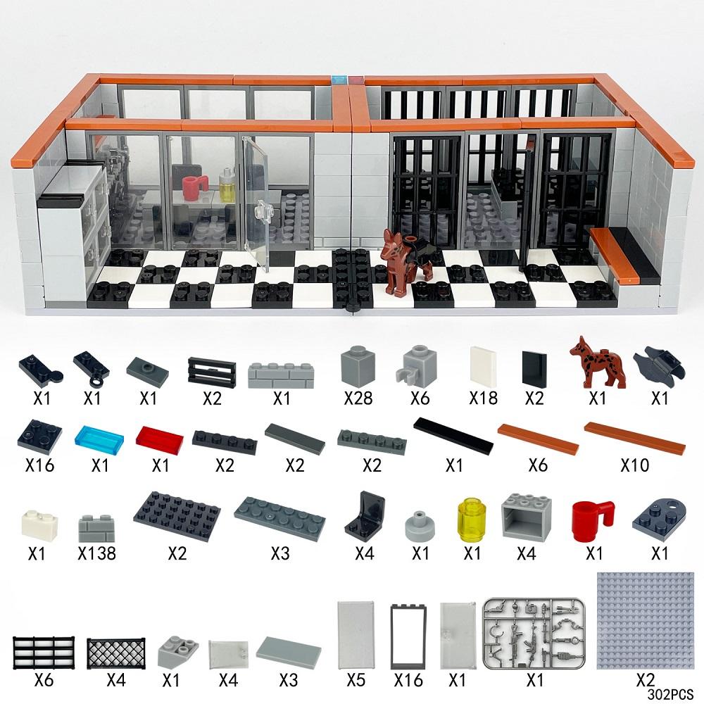 302 DELAR Fängelsestad Polisstation Förhörsrum Mini Actionfigurer Set Leksaker Tillbehör Byggklossar Tegelstenar Leksaker