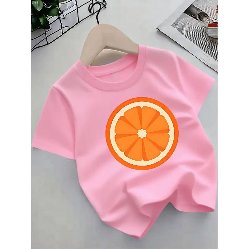 European sizes Children's T-Shirt Summer New Cartoon Orange Pattern Short Sleeve - Cute Fashion Kids Clothing