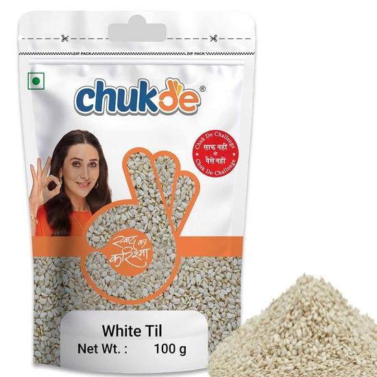 Chukde - White Seasame (Safed Till) | Ideal for Topping | Good Source of Nutrients, Supports Heart Health, Promotes Bone Health | 100 Gm (Pack of 4)
