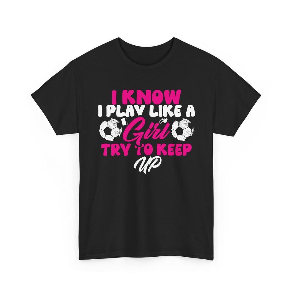 Soccer Shirt, I Know I Play Like A Girl Try To Keep Up Women Girls Funny Shirt Unisex T-Shirt