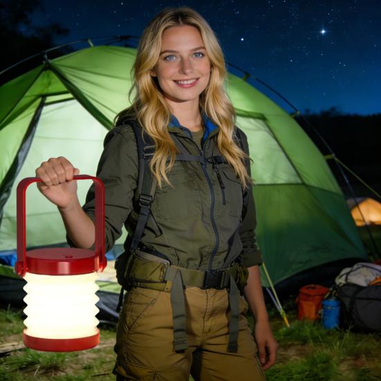 The unique design includes a wide wooden-textured handle and an innovative foldable lampshade that converts from a vertical table lamp to a portable handheld lantern. With multi-angle adjustment and 360-degree rotation, it delivers precise lighting for bedrooms, living rooms, tents, or gardens. Lightweight and easy to operate with intuitive buttons, it comes in white, grey, red, and warm yellow, perfect for personal use or gifting.