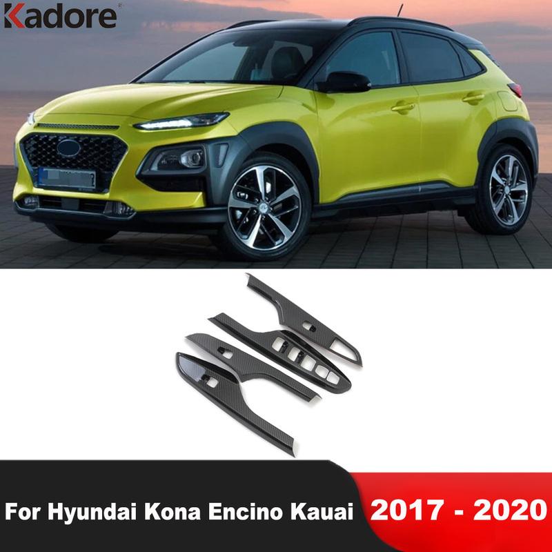 Car Interior Door Window Lift Switch Button Panel Cover Trim For Hyundai Kona Encino Kauai 2017- Carbon Fiber Accessories
