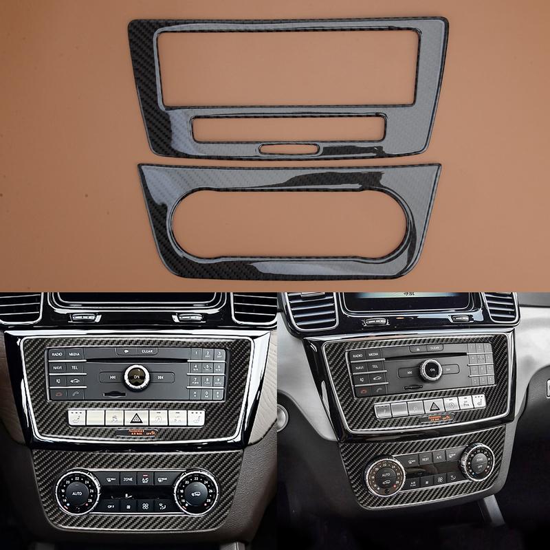 2 st/set Centerkonsol CD-panel Cover Trim Passar för Mercedes-Benz GLE W166 2015 2016 2017 2018 Svart Kolfiber