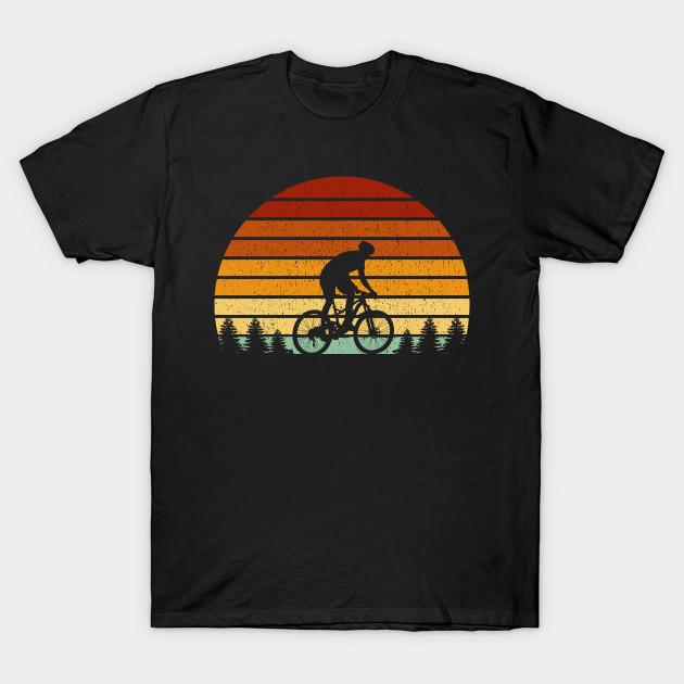 Men Black Print T-shirt Vintage Sunset Mountain Biking Gift For Mountain Bikers No-Cut Transfer Paper Print Cotton Tshirt