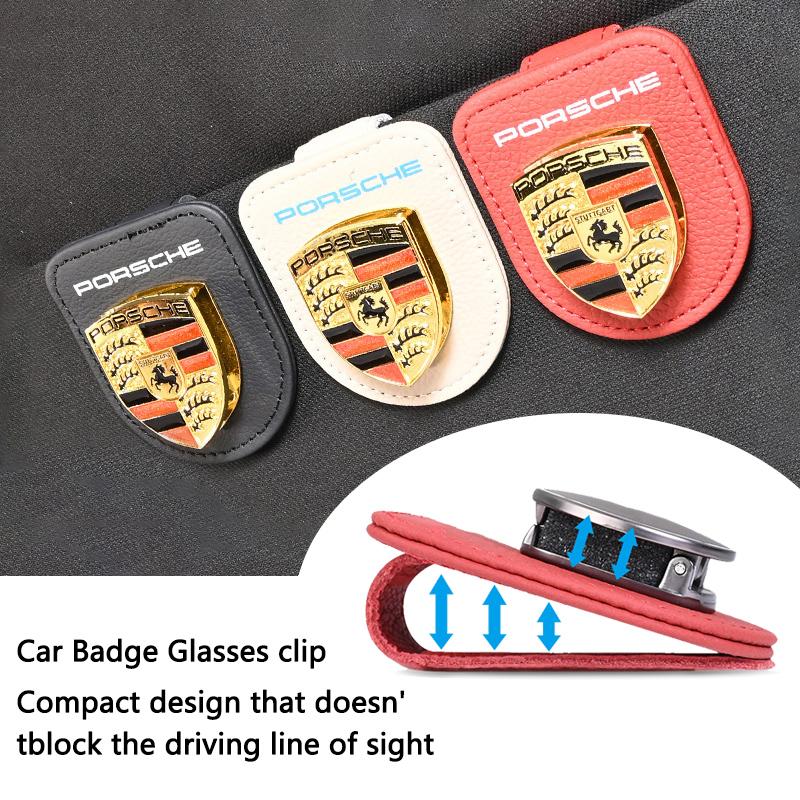 Bilemblem Solglasögonklämma Hållare Magnetisk Läder Bil Solskyddsklämma För Porsche 911 Pajun Cayenne Cayman Panamera Macan Taycan