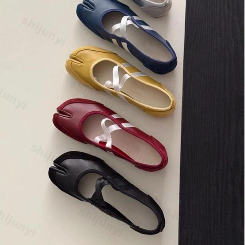 Damsko Balettlägenheter 2026 Vår Sommar PU-läder Skor Mary Janes Skor Korsrem Mode Lättviktiga Halkfria Vardagsskor