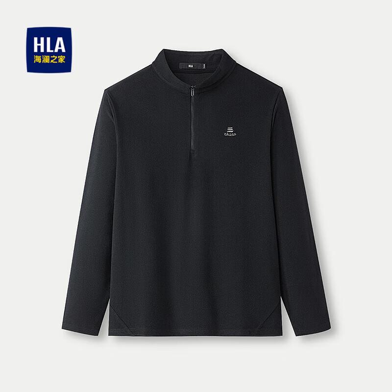 HLA Men's Brushed Embroidered Half-Placket Long Sleeve Casual Top