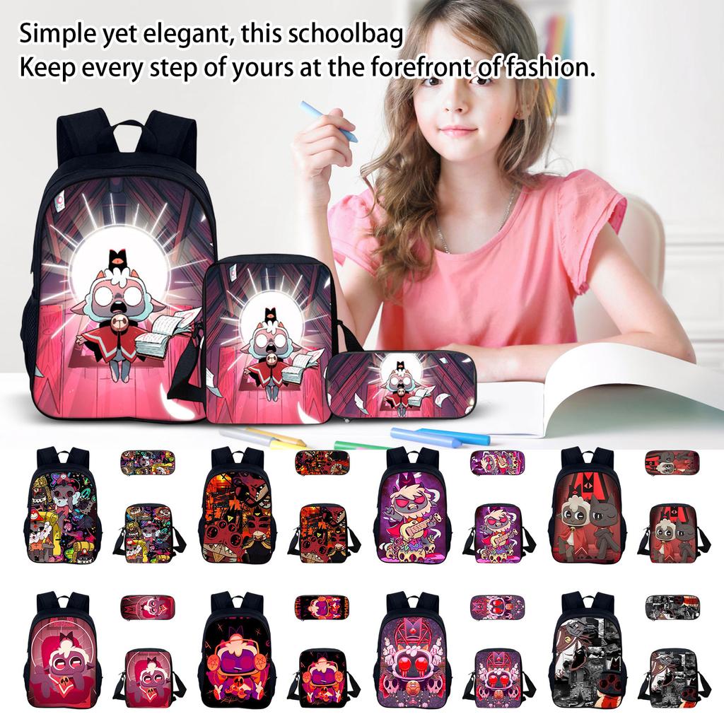 Ryggsäck med stor kapacitet för grundskole- och gymnasieelever, tecknad axelväska och pennfodral för barn
