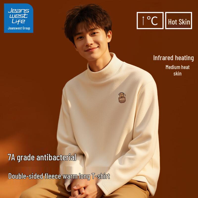 JEANSWEST LIFE Men's Fleece-Lined Thermal Half-High Collar Shirt