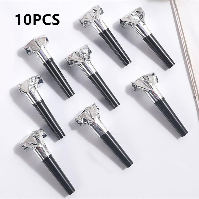 10Pcs Funny Party Blowouts Gold Silver Whistles Kids Birthday Party Favors Decoration Supplies Noice Maker Toys Goody Bags
