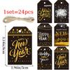 24pcs/set Happy New Year Labels DIY Black Gold Gift Wrapping Paper Hang Tags Paper Cards for New Year Party