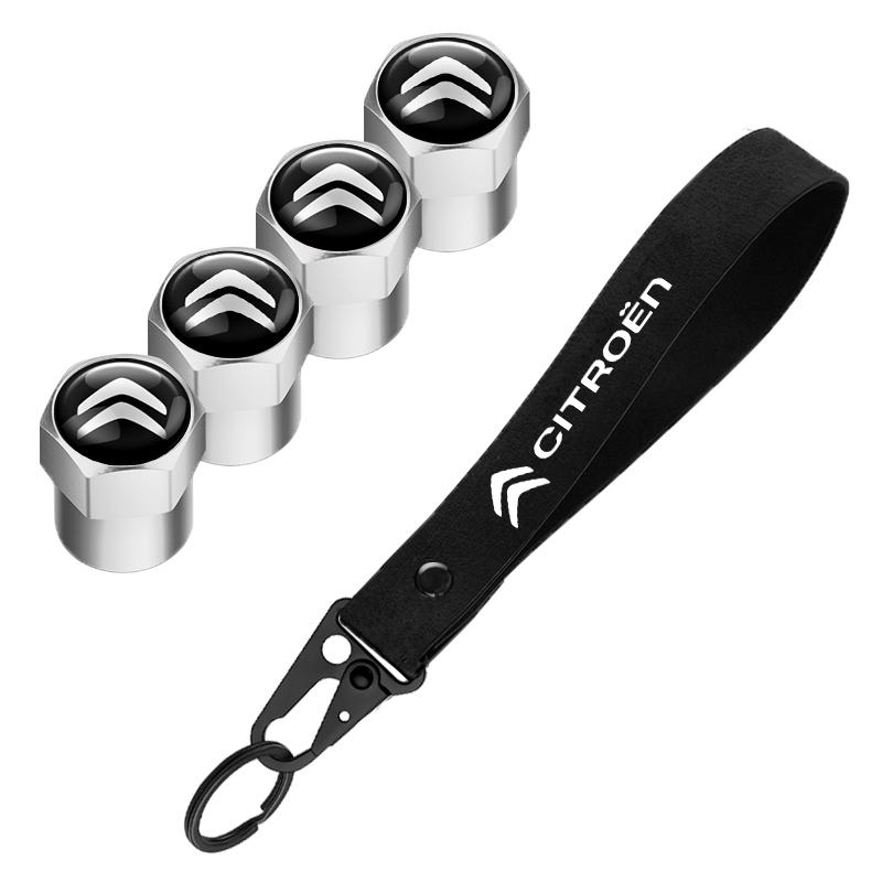 För Citroen C1 C2 Grand C4 Picasso C4L VTS C-ELYSEE DS Aluminium Metall Bil Däckventilskydd Bilmärke Nylon Nyckelring Tillbehör