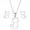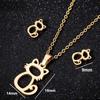 Härligt Guld Färg Kattunge Katt Rostfritt Stål Smyckesset Halsband Herr Collares Mode Ihåligt Kattörhänge Halsband Tass Smycken