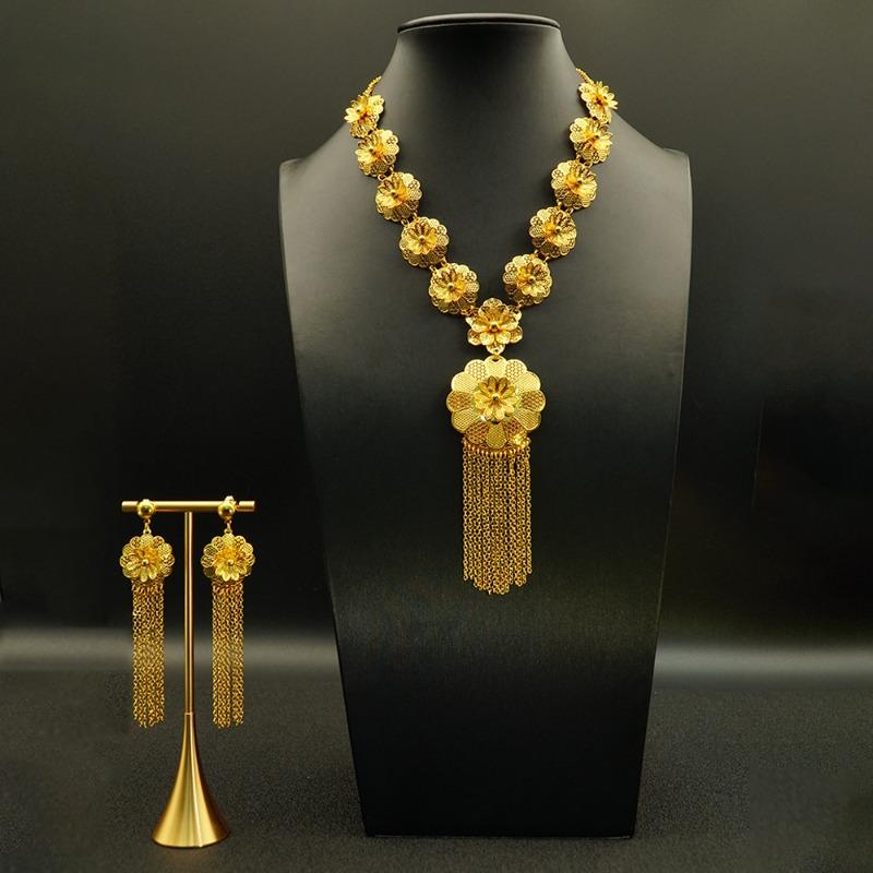 Gold Plated Flower Necklace Earrings Jewelry Set Wedding Bridal Jewelry Accessories