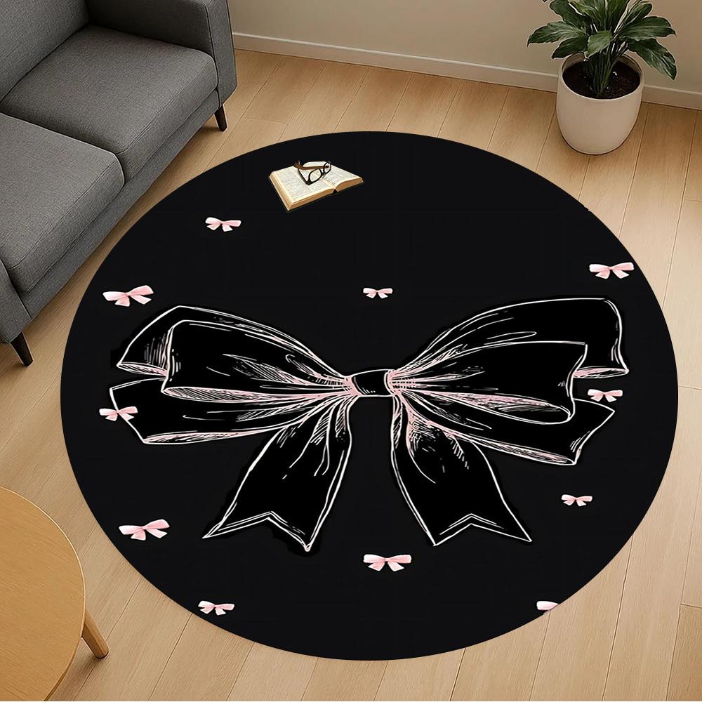 1pc bow ribbon Round Chair mat office Area Rug - Non-Slip, Floor Mat for Office, Bedroom, and Indoor Decor p127145
